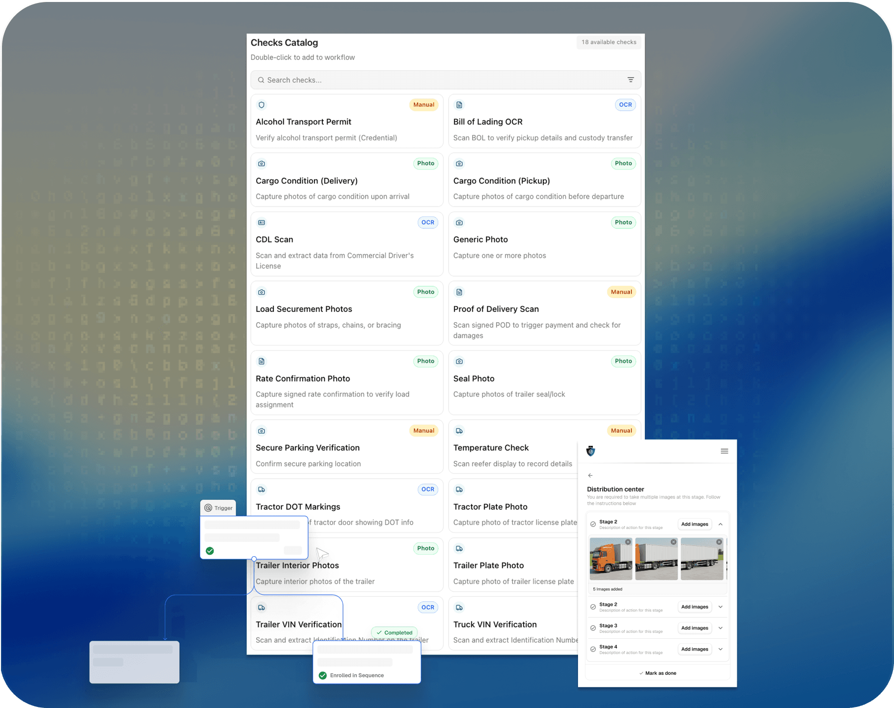 Highlight cargo conditions, capture truck photos, and verify shipment documents.